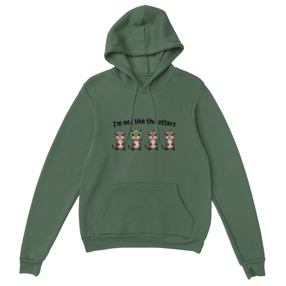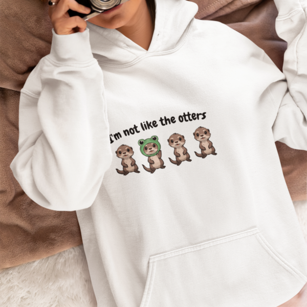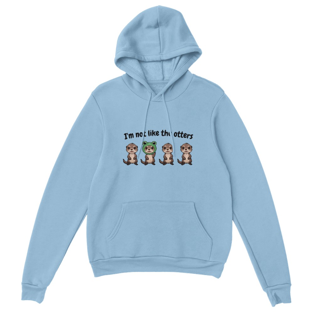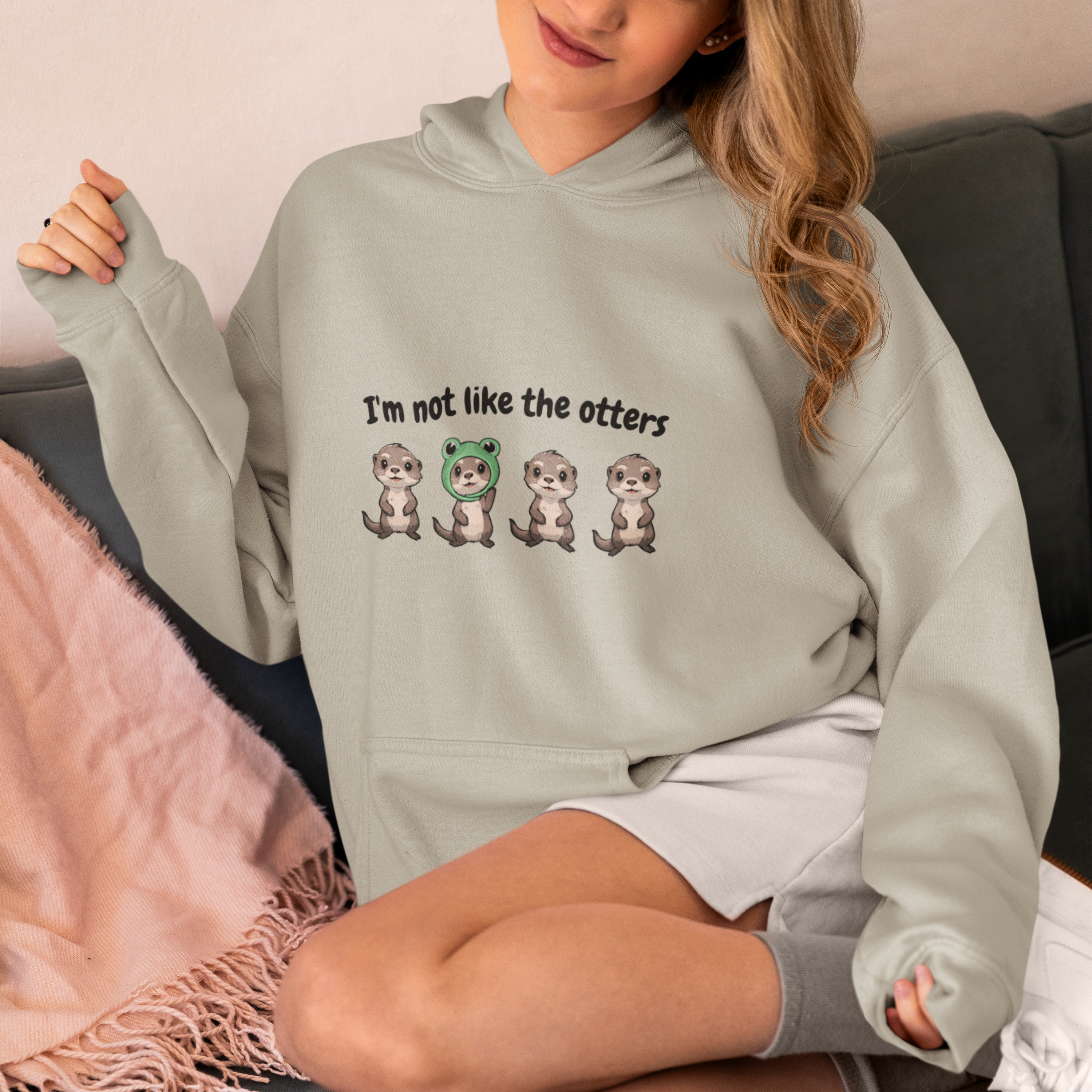 Be not like the OTTERS with this cozy comfortable hoodie! Celebrate what makes you unique with this charming hoodie featuring a group of otters—one proudly standing out in a quirky frog hat! This playful design is perfect for those who embrace their individuality and neurodiversity with pride.