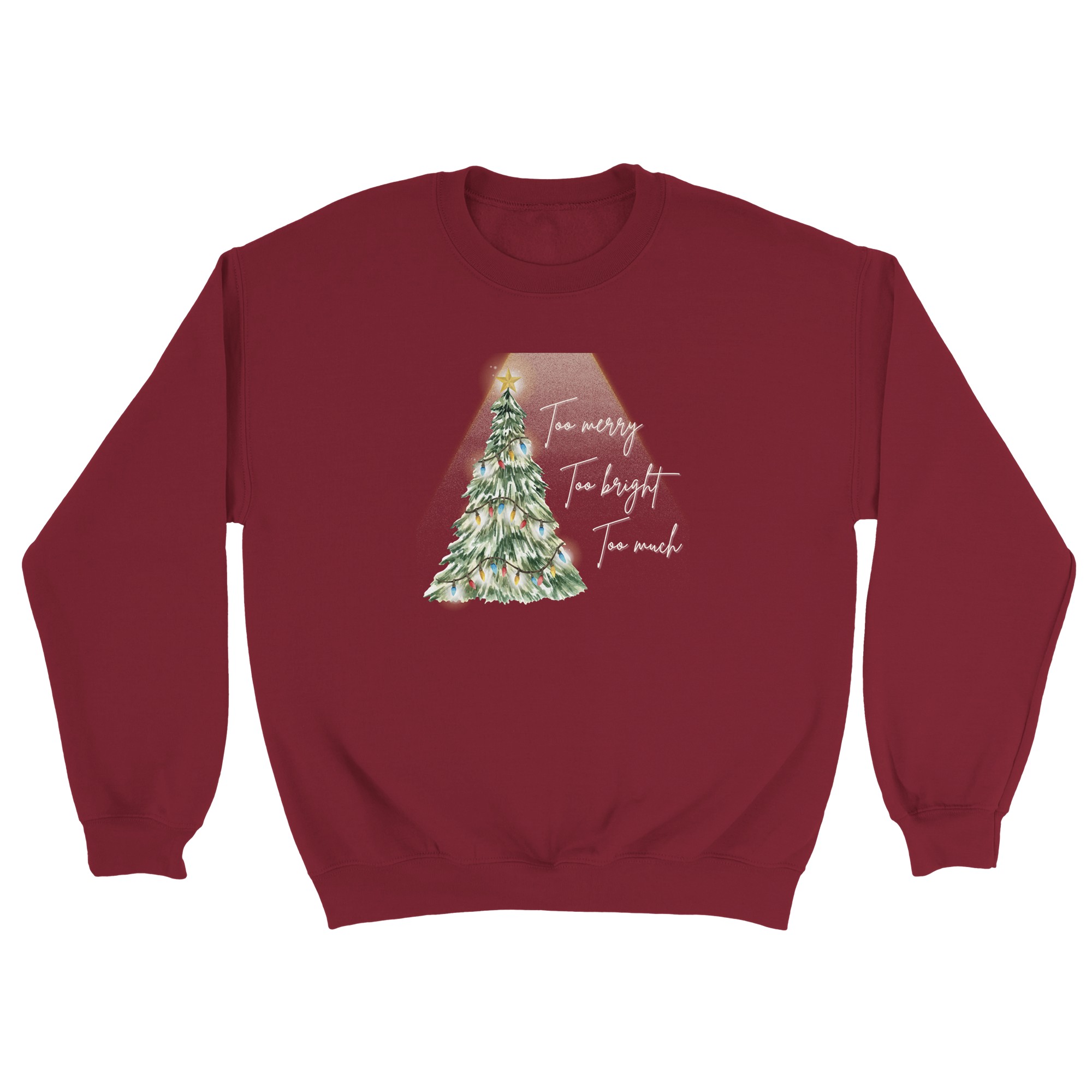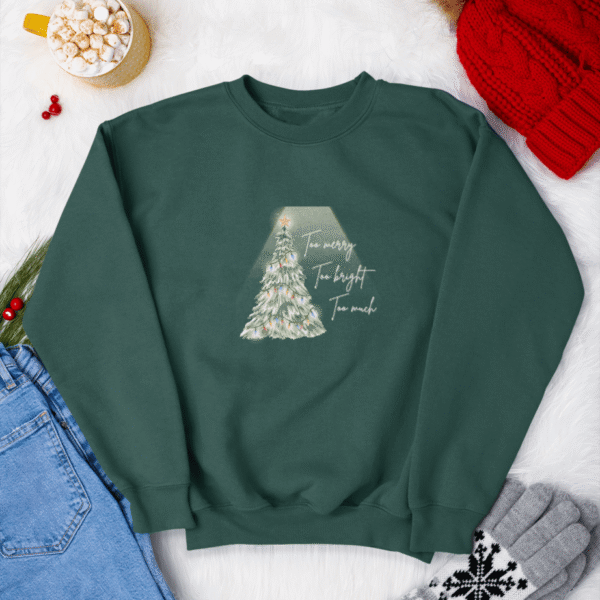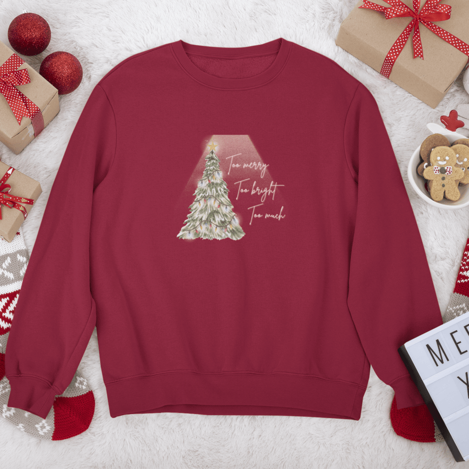 Celebrate the holidays your way with this “Too Merry, Too Bright, Too Much” Christmas sweater — perfect for anyone who loves the festive season but gets easily overstimulated (same 💙).