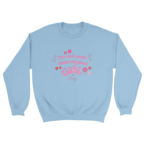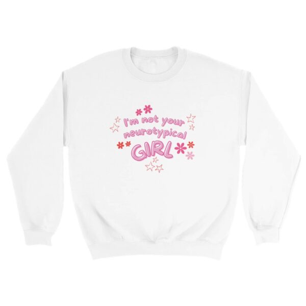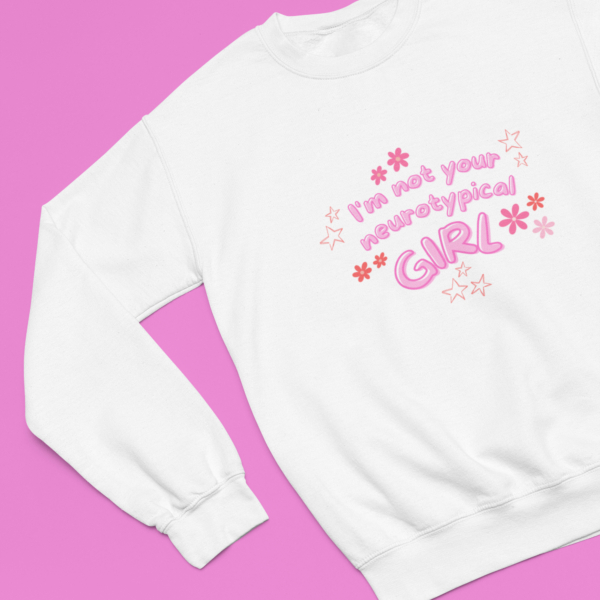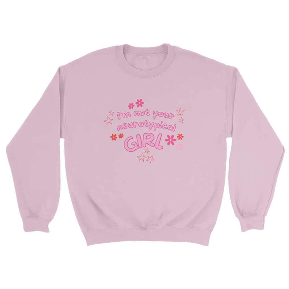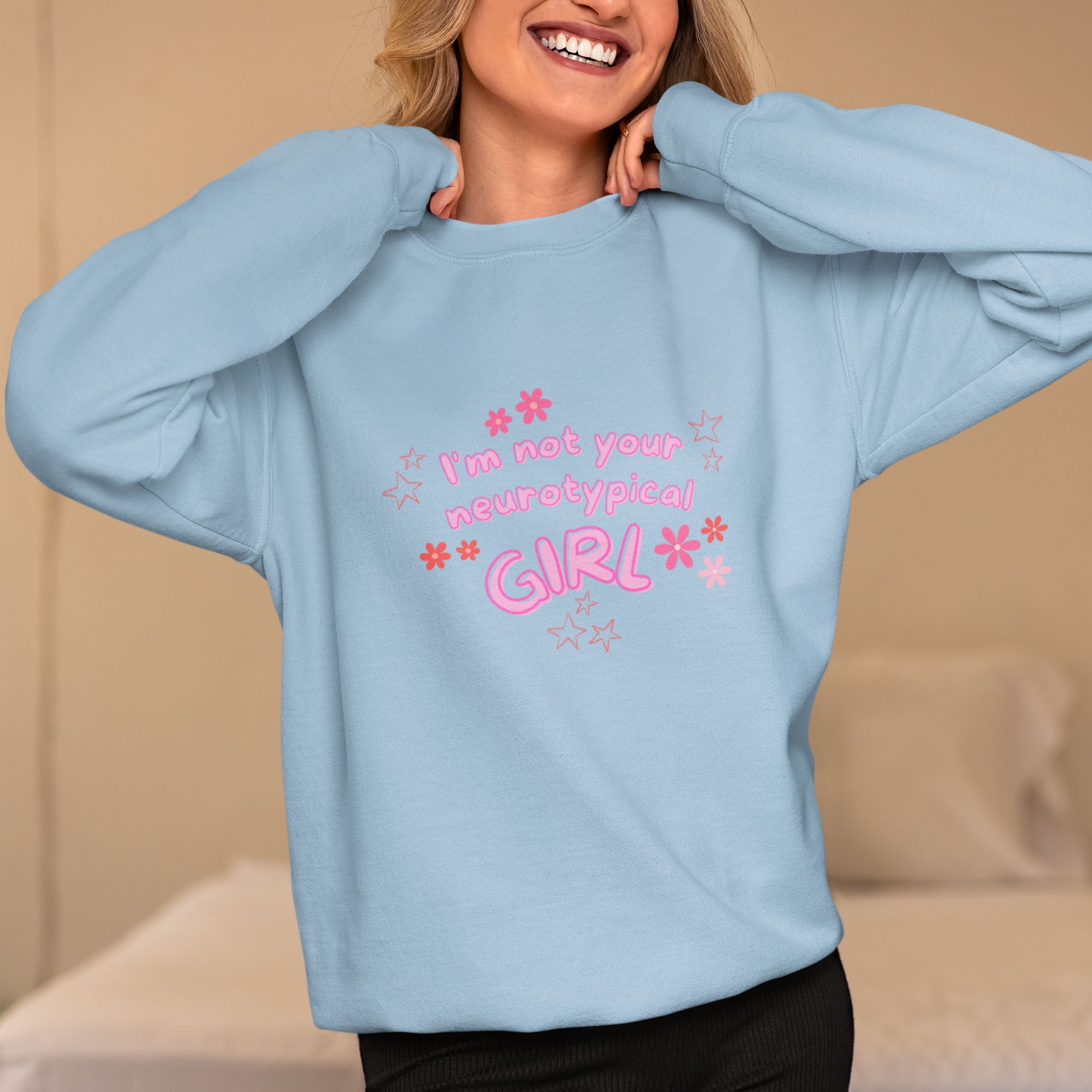 Celebrate your unique neurodiverse identity with this cozy sweatshirt featuring the vibrant phrase, “I’m Not Your Neurotypical Girl.” Designed for those who embrace their differences and proudly express them, this sweater is perfect for lounging, casual outings, or sparking conversations about neurodiversity.